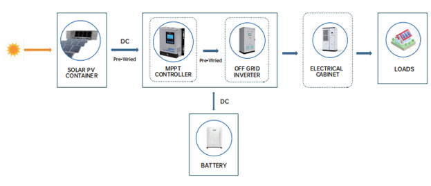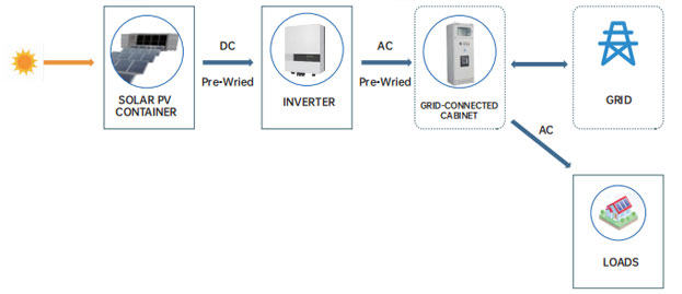 सोलार मोड्युलले उत्पन्न गरेको प्रत्यक्ष प्रवाहलाई इन्भर्टरद्वारा वैकल्पिक करेन्टमा परिणत गरिन्छ, जुन त्यसपछि लोडमा आपूर्ति गरी ग्रिडमा जोडिन्छ। यसरी घरायसी भार तिर्ने क्रममा अतिरिक्त बिजुली पनि ग्रिडमा बेच्न सकिन्छ।